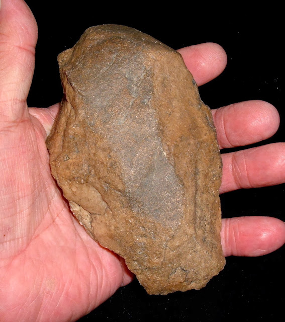 This stone has an appearance reminiscent of a perched bird. Such similarities would not have gone unnoticed among our ancestors. Acheulean, est. 600,000 to 100,000 BP. Sahara Desert, North Africa. This piece is 5.5" long, 3.25" wide, over 1.5" thick and weighs 20 ounces.
